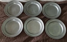 German Pewter Set Of 6-10” Dinner Plates. Vintage FEINZINN German Pewter Plates