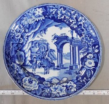 Antique blue dinner plate James Ralph Clews Romantic Ruins c 1820 transferware