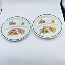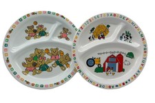 2 Vtg. Child's plastic melamine divided kid dish plate Teddy Bears & Farm 8.5in