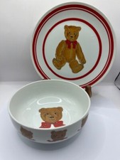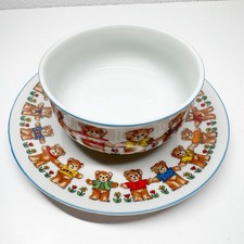 Vtg. 2 Piece Porcelain Set - Plate, Bowl , Teddy Bear Pattern by Curzon