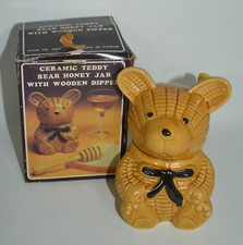 Vintage Ceramic Teddy Bear Honey Pot Jar with Removable Head And Honey Dipper