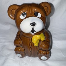 Vintage Honey Pot Ceramic Teddy Bear w/ Yellow Bow; Houston Foods 1982; Kitschy