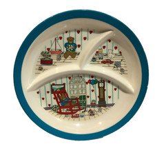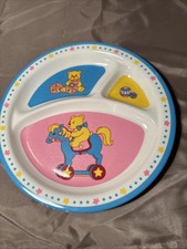 Vintage Child's plastic melamine divided kid dish plate Teddy Bear Rocking Horse