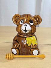1982 Houston Foods Teddy Bear Honey Pot Vintage Ceramic WITH Honey Dipper Stick