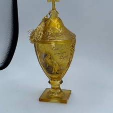 Vintage Amber Glass Religious pedestal goblet with music box lid.