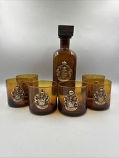 Handcrafted Memoriandum in Pelae Coat of Arms Decanter and 6 Rocks Glasses MCM