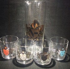 Vintage GLASS Pitcher Cocktail Glasses Set SCOTTISH LION Shield Federal BARWARE