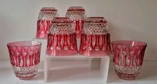 Very Nice Vtg Bleikristall Cut to Clear Cranberry Peace Dove Rocks Set New Cond.