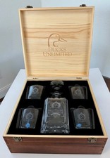 Ducks Unlimted Reserve Etched Decanter & 4 Glasses Tumblers Set In Wooden Box