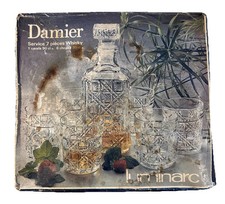 Vintage Damier Luminarc J G Durand Arques France 7 Pc Set Decanter & 6 Glasses