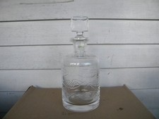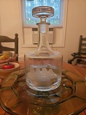 Vtg Barware CLIPPER SHIP Etched Glass Decanter w/ Stopper Whiskey