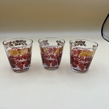 LUMINARC WHISKEY GLASSES SET OF (3) GOLD GRAPES/FRUIT DESIGN