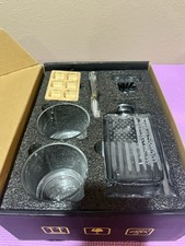 NEW Whiskey Set: 2 Square Glasses, 2 Rocks, Tongs, 2 Coasters, Pouch & Decanter