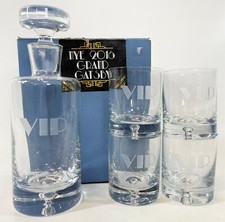 Whiskey Crystal Decanter & 4 Whiskey Old Fashioned Glasses Set "VIP" Etched L661