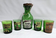 Tru Vintage Cowboy Western Carafe Old Fashion Green Glass Bar Set Bourbon Whisky