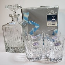The Toscany Collection Whiskey Set Hand Cut Crystal 4 Glass Set & Decanter VTG