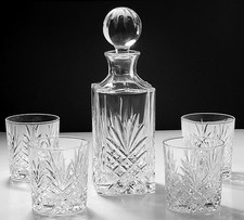 Crystal Clear Industries ESSEX Whisky Decanter Set 4 Dbl Old Fashioned Glasses