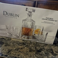 GODINGER Dublin Crystal 5-Piece Decanter Whiskey & Double Old-Fashion Set