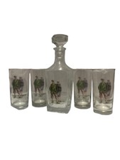 Printed Whiskey/Highball Glasses Set of Four & One Decanter "1920's Golfers"