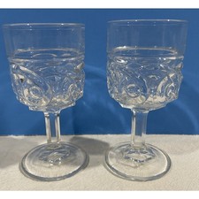 2 x Antique 1891 Model Flint Glass Co. Halley's Comet EAPG Clear Wine Glasses