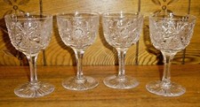 SUPERB ANTIQUE AMERICAN BRILLIANT CUT GLASS WINE GOBLETS RARE SET OF 4 NEAR MINT