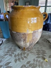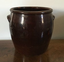 Antique Brown Glazed Crock 19th century Heavy & Tall Planter Urn Vase Handles