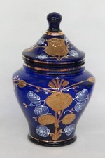 Cobalt Blue Glass Hand Painted Floral Urn Bonboniere Cookie Jar with Lid 3117B