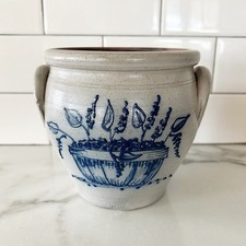 Vtg Rockdale Union Stoneware Urn Crock Hand Made Floral Salt Glaze 1990 Country