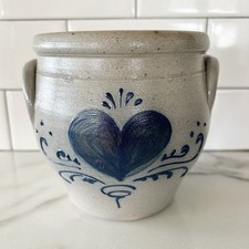 Vtg Rockdale Union Stoneware Urn Crock Hand Made Heart Salt Glaze 1990 Farmhouse