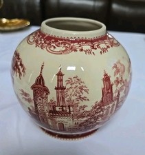 Vintage Red Transferware Storage Jar. 6" Dia, 5" Tall