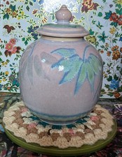 Ceramic Ginger Cookie Jar Storage Canister Urn with Purple And Green Leaf Motif