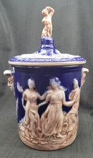 Vtg NORLEANS ITALY Ice Bucket / Biscuit JAR Urn ROMAN Cherub Cobalt 14" ~ READ