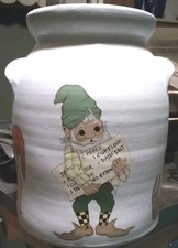 One Of A Kind 11" Tall Vintage Handpainted Churn/Jar/urn 1988.Christmas,elves