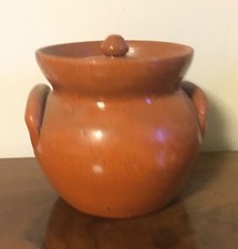 Vintage Jugtown Redware Crock & Cover with Applied Handles Jug Town Urn Pottery