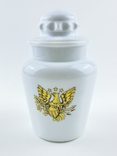Vintage Golden Federal Eagle Milk Glass Canister Ginger Jar Urn