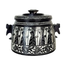 Round Lid Grecian Urn Cover Black Silver Pottery 5 Inch