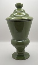 Vintage Mid Century Pottery Urn Canister Apothecary Jar Avocado Green 13 Inch