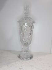 Vintage Crystal Cut Glass Large Pedestal Candy Apothecary Dish w/ Lid