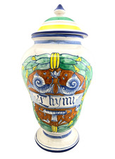 Vtg Majolica Pottery THYME Albarello Jar Urn ITALY Deruta Hand Painted Colorful
