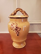 Vintage Arte Italica Large Yellow Jar w/Lid Urn Canister Vase Leaf/Grape Design