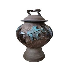 Ceramic Yadro Print Glazed Ceramic Jar Keepsake Urn. Vintage
