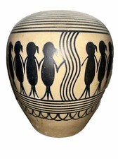 Pier one imports Ceramic Aztec Women Friendship Jar/ Urn No Lid Black Tan