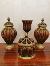 Rare Amber Bubble Glass & Brass Urns Canister Goblet Set Ornate India Decorative
