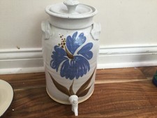 ART Pottery Stoneware Hand Painted blue flower Beverage Dispenser Urn spout 11'