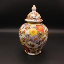 VTG Sadler England Floral Birds of Paradise 5" Ginger Jar Urn Tea Bag Holder Lid