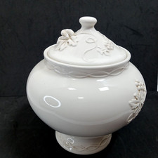 Giant Vintage Ceramic Urn or Cookie Jar, off white 14" x 11", floral relief art