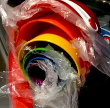 1968 stock Vintage New Condition Red Blue Yellow Tupperware Toy Shape O Ball