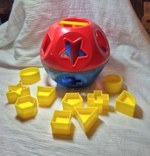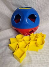 Vintage Tupperware Toy Shape Sorter Ball 10 Puzzle Pieces Complete Used red blue