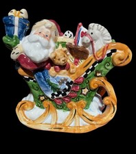 Vintage large ceramic cookie jar/figurine Santa in Sleigh Full of Toys and Gifts