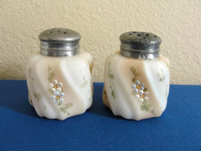 beautiful fenton art glass hand painted salt peper shakers